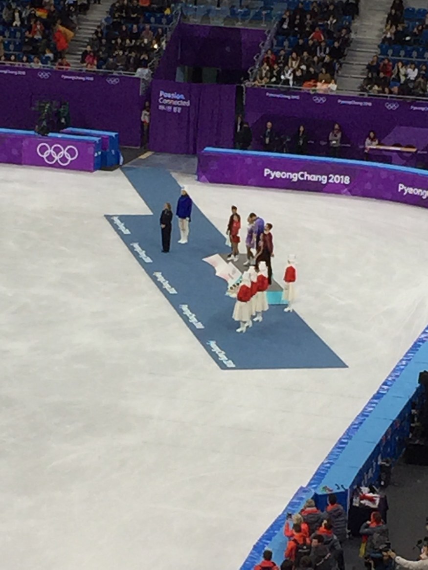 And as for it being subjective, I can say with confidence that the way it panned out for who was first, second and third would have been exactly how I picked it. The Germans who won the gold medal put on a powerful performance that will stick with me for the rest of my life. They were graceful, yet they showed enough strength that they would be able to compete with the brute force of a hockey player. It was fun to even see the award ceremony at the end of the competition. It wasn’t the official medal ceremony, but each competitor that made it up to the stands received a stuffed version of Soohorang that they could hold up as it is was a medal.