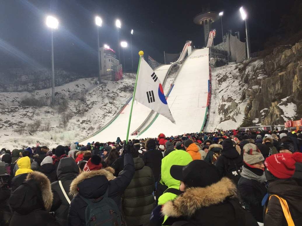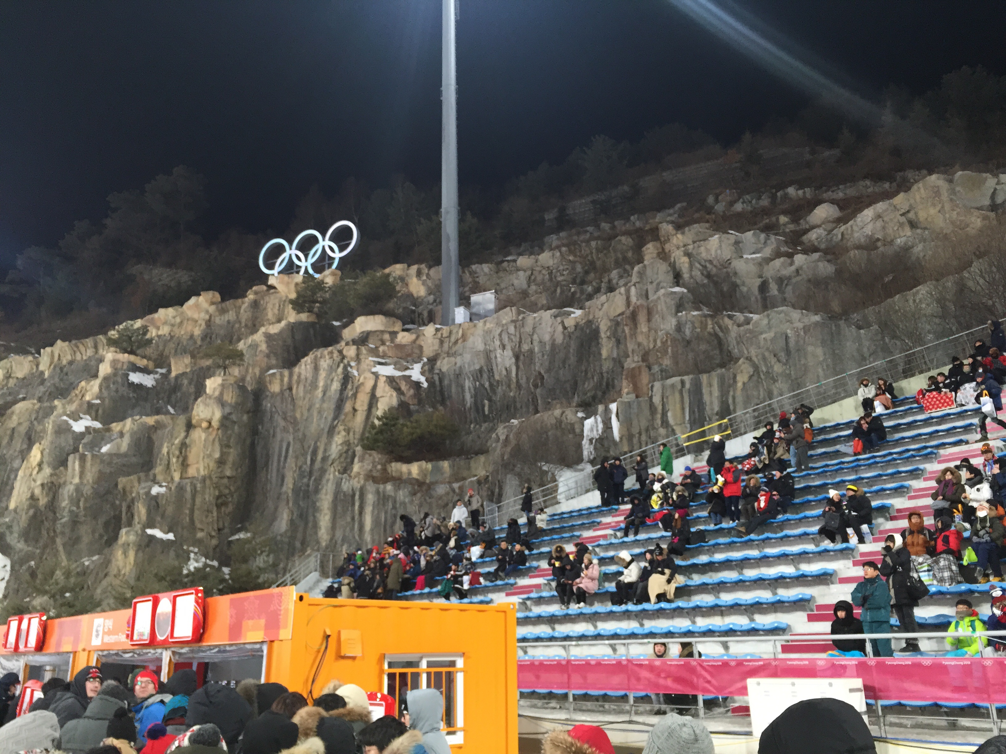 And this goes back to the costs of hosting the Winter Olympics. This beautiful structure was not here a couple of years ago. It was built specifically for the Winter Olympics. What is going to happen to this thing after the crowds go away? Are there going to be enough people who want to come out here to try their hand at ski jumping? Or will Koreans start to take up the sport and during the next couple of Winter Olympics will we start to see them being a huge impact in this sport? Think about the five stadiums clustered together back in the Olympic Village. Is a town of 200,000 people ever going to have a use for one large stadium, let alone five, one of which was designed to house curling? Now I have been told that Pyeongchang took this into account, and they designed all of the structures so they could be torn down and transported anyplace that might have a need for such structures, like the next Winter Olympics, but it still comes at quite the cost that there is no way that they will ever see a profit with this event.