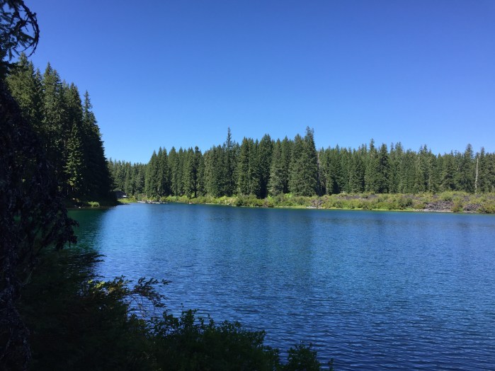 One of these spots is where I found myself yesterday, Clear Lake. It is this calm lake nestled in the Cascades. The water is a clear blue, and it will always remain that way because nobody is allowed to bring motor boats onto the lake and ruin the purity of its water. The water is fed into this little valley by underground streams, so it always remains a little cool even during the heat of summer, so you will never find anybody swimming in this lake. But it is the perfect place to take a kayak to, or rent one of the row boats that you can find at the docks at the place. It is easily the perfect place to learn how to paddle board. You cannot rent them here so you would have to bring one to the location, but the calm water is ideal to allow a person to wobble on the board without having to worry about the wake of a passing boat to knock them off. There are no real beaches to hang out at but you can find some nice little coves among the tree that allow you to sit back while people take turns with the paddle board. It turns into a nice place to spend the afternoon on a hot Oregon afternoon.
