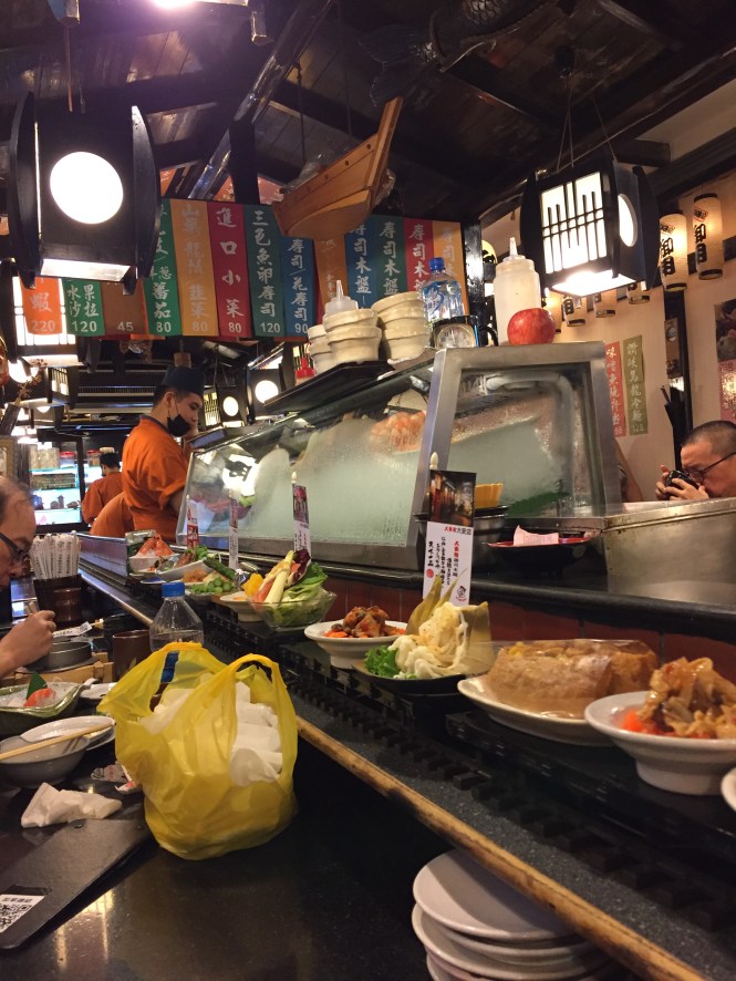And of course there was always a moment to find some food as well. You are also able to finding the blending of cultures here as well. We stopped at a sushi place in the heart of the shopping district during lunch. I’m not sure, but it looked like all of the signs were in Chinese even though this is a typical Japanese dish. We were also asked to talk in the limited Mandarin that we knew to order even though what we were ordering came from a different part of east Asia. It made me think that even though there is not a huge western influence in this little corner of the world, it is nice to know that they are still willing to blend cultures together to create a new one that is fun and delicious at the same time.