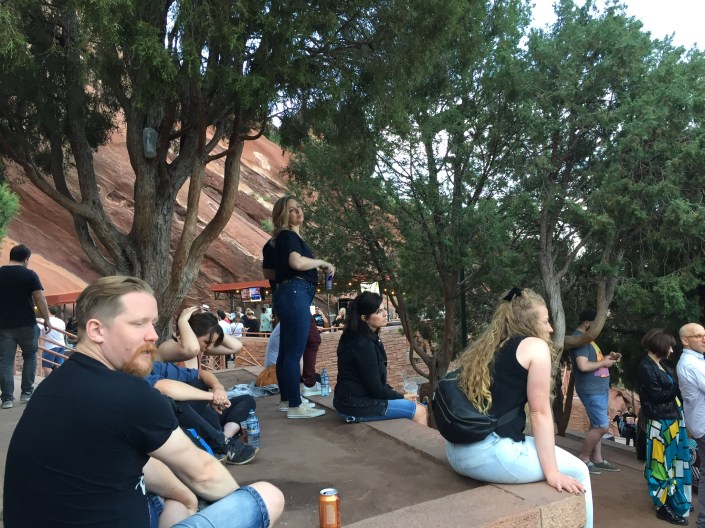 The best part is that the bottom rows are general admissions, and as long as you are one of the first people into the amphitheater then you will get an amazing seat for the show. Even if you are not there early and have to sit in the back, you still will have a great seat. You might not be able to see as well, but the two rocks create the perfect acoustics for any band playing, so the music sounds amazing no matter where you sit. But it you don’t mind a side view, each side has these little ledges that you can sit on underneath the pine trees that they planted to give the place more of a feeling like you are in the mountains to see a concert.
