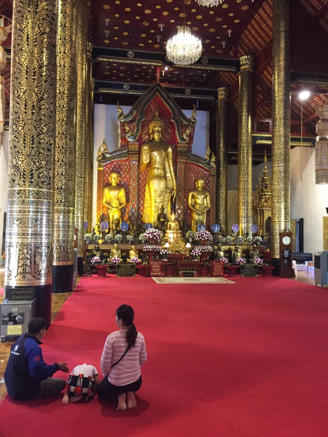 So I went out to explore a couple of the various wats that can be found in the old city. I started early enough in the day so the heat would not drag me down, and I was able to explore both the Wat Phra Singh and the Wat Chedi Luang. These structures are the ancient temples that house some of the most spectacular buddhas that can be found in Chiang Mai as well as the grounds on which the monks can travel around and meditate. Not only are the gold encased buildings and statues impressive, but so are the well-cared for grounds on which they reside.