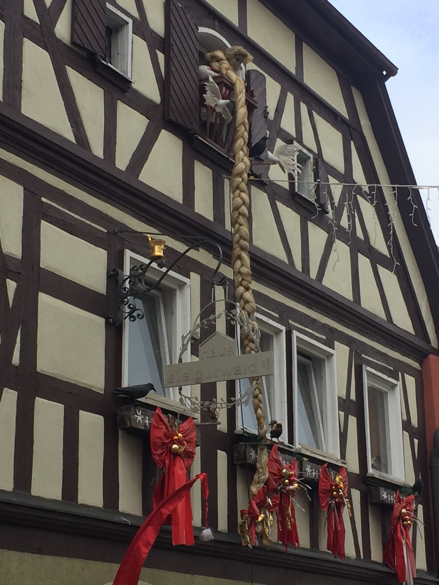 When we were looking at visiting this part of Germany, we originally thought of staying in Rothenburg because it was the inspiration for coming out here in the first place. The last time we stayed there twelve years ago, the prices were reasonable, and we expected them to be the same this time around, but Christmas happens to be the big time of the year for Rothenburg and the prices jumped up quite considerably. So we started to look for other towns in the area that would be more affordable and came across the sleepy little town of Bad Windsheim. It is on the rail line, and only a forty minute train ride to Rothenburg, and an hour train ride to Nuremberg, so as long as the place was comfortable, it seemed like the perfect place to stay.
