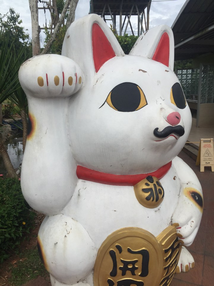 They do try to distinguish the various stops with different statues you will find decorating the big slabs of concrete. Most of the time it is comic versions of children holding up signs, but every once in awhile, you come across something a little more creative. I enjoyed to Japanese cats outside the bathrooms the best. The one with the pink bow on the head indicated the women’s bathroom, and the one with the mustache was for the men.