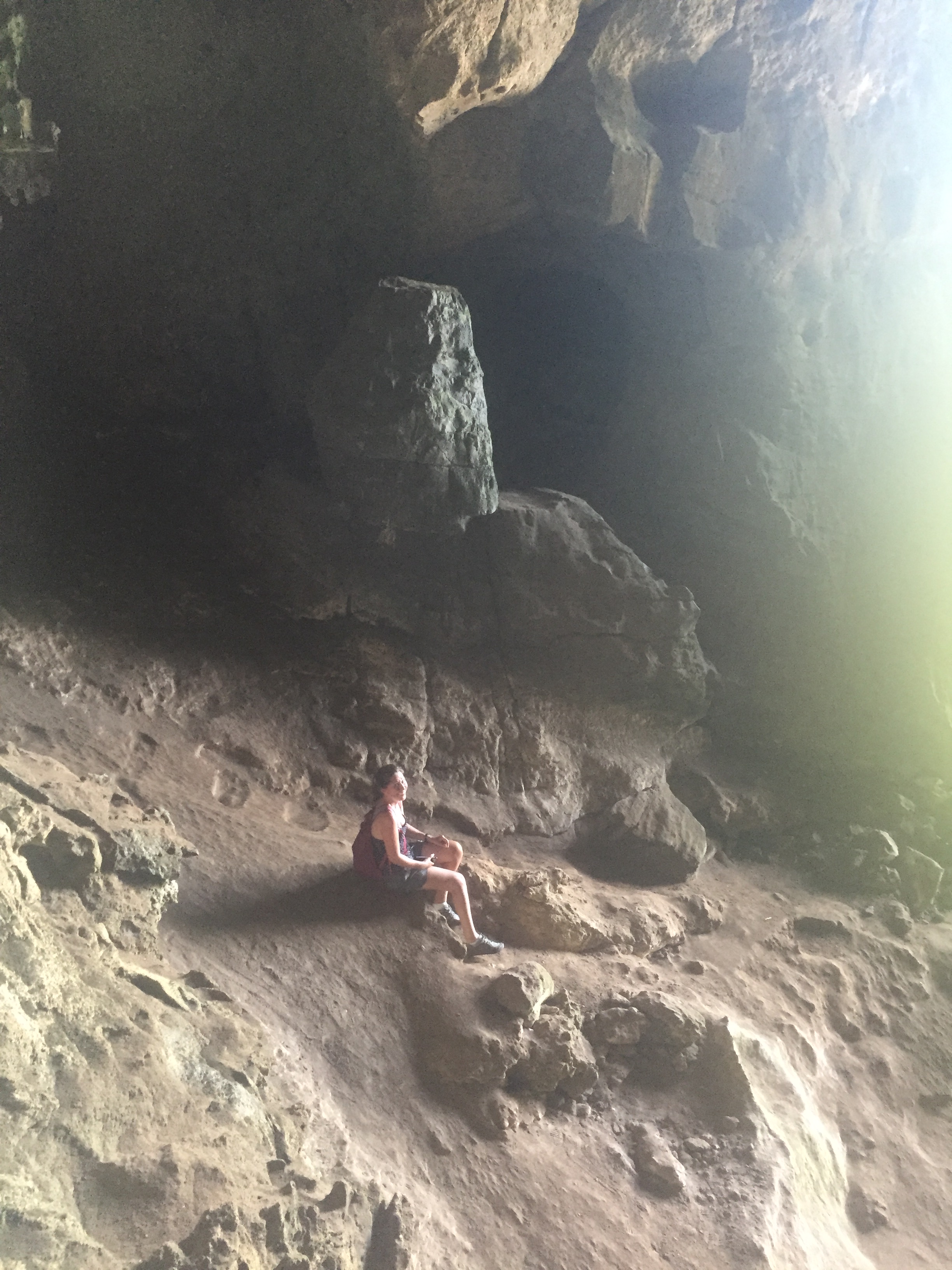 Once up there, I was able to explore the cave, and I went far back into it. The features were amazing and I could see the slow deliberate care that the elements used to carve out this little alcove into the cliff. There were many corners that I could look at, and I even brought a flashlight because I was told that it gets really dark the further back I got into it, but when I reached that entrance, my flashlight wouldn’t work anymore. So I didn’t go in.