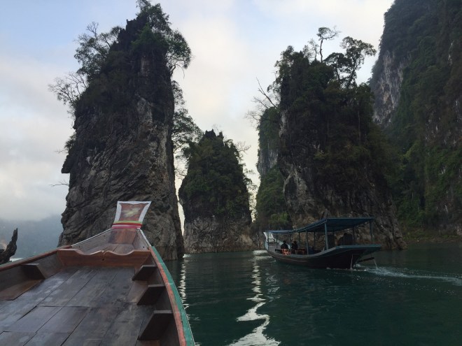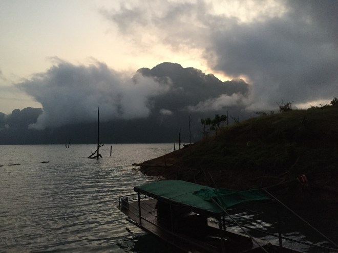 I am not usually the type of person that likes to get up early in the morning while I am on vacation, but I was not really given a choice today. The plan was to get up early to travel to one of the more iconic spots on this vast lake, and it was worth the annoying ring of my alarm. Khao Sok looks completely different in the morning. The clouds hang low over the hills creating a misty atmosphere that I originally thought could only be seen in a Hollywood movie about this part of the world. I wondered what it would have looked like during the rainy season, or if the clouds would have dipped down even further, making it impossible to see anything at all.