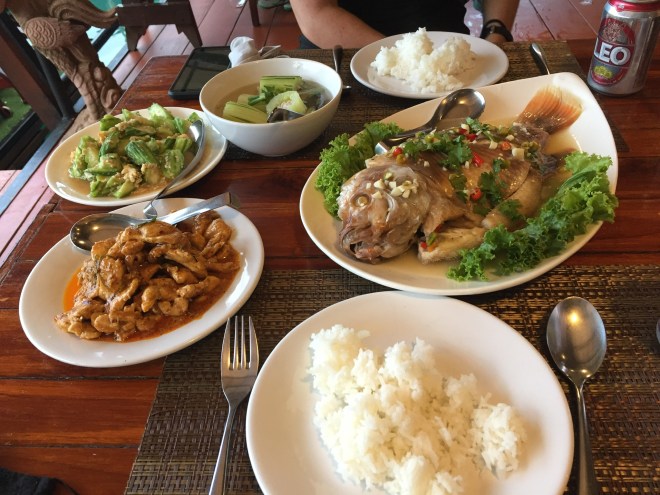 The food that they served was all traditional Thai food, and it came out in huge portions with the option for being able to get a refill at any time that we wanted. It was authentic home made Thai food as well. With us being farangs (foreigners), they believed that we could not handle the spice that they gave to all over the other people staying there, and though I would tend to agree that I cannot handle the spice that many Thai people can, being raised on Mexican food, I can hold my own when it comes to spice. I kind of wished they added a little bit more of a kick to our food, but that did not detract from the overall pleasure of the meals.