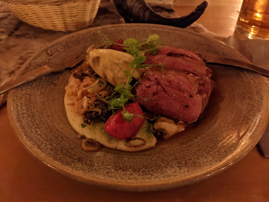 Another dining adventure came outside of the town of Olfus called Ingolfsskali. It is housed in a traditional Viking longhouse and just by entering it, I felt like I was walking into the story of Beowulf. The place does not only offer great food, but it has a place outside where you can participate in axe throwing and archery. We weren’t allowed to take part in this feature the night that we were there because of the high winds at the time, but I am sure that there are enough times that you can see people throwing axes outside.