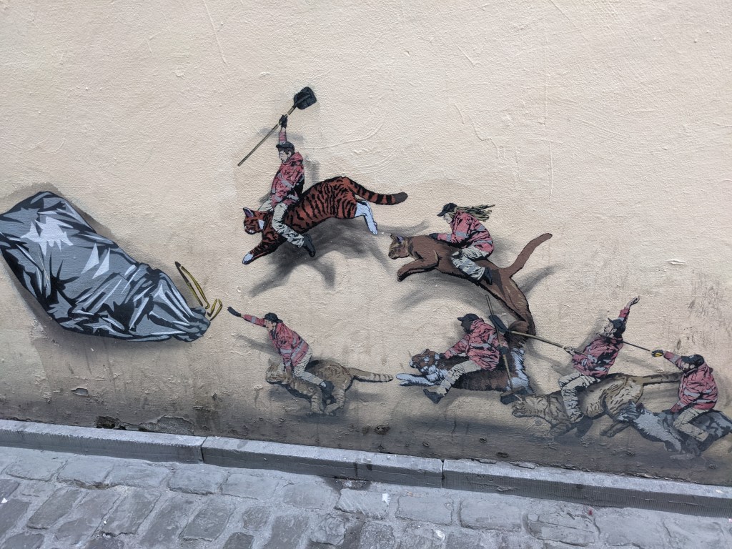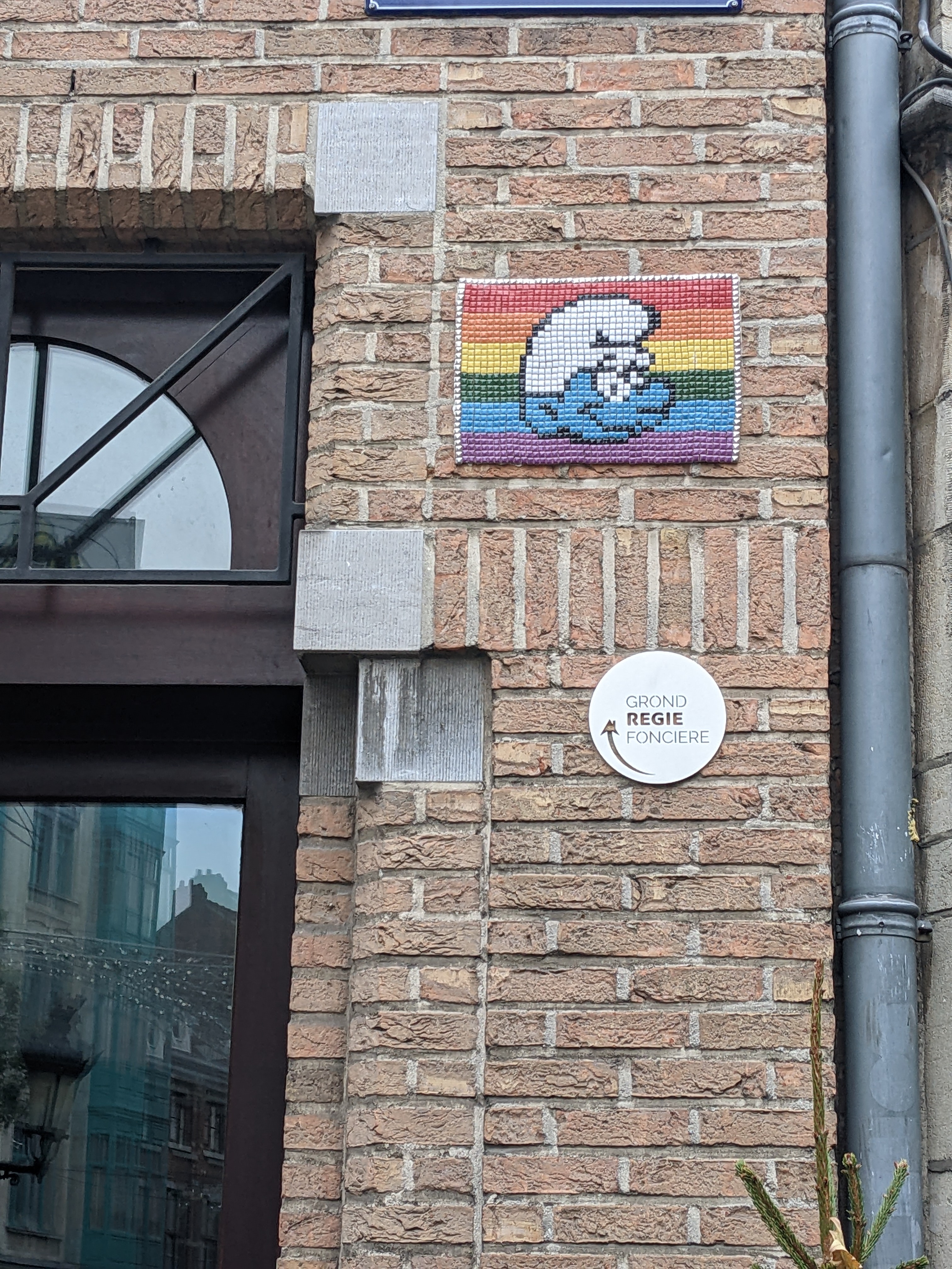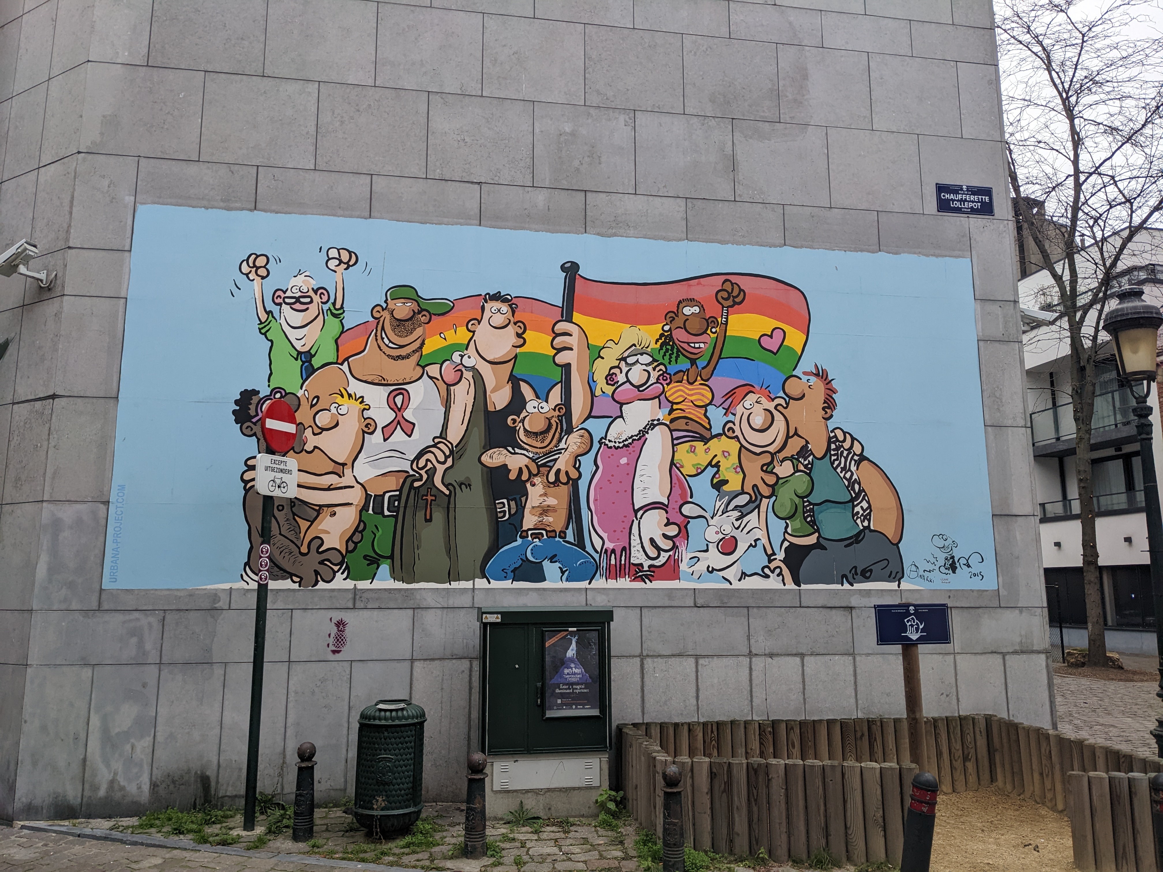 Once you start to notice these murals, you start to notice that it goes beyond the comic culture of Belgium. There are many pictures that are painted on the sides of buildings, highlighting many different issues that are important to the people of Brussels. They are just not painted on the side of buildings, taking up the whole wall; instead, you have to look at the corners to find these great little pieces that still will make you laugh, but will also still tell a great story at the same time.