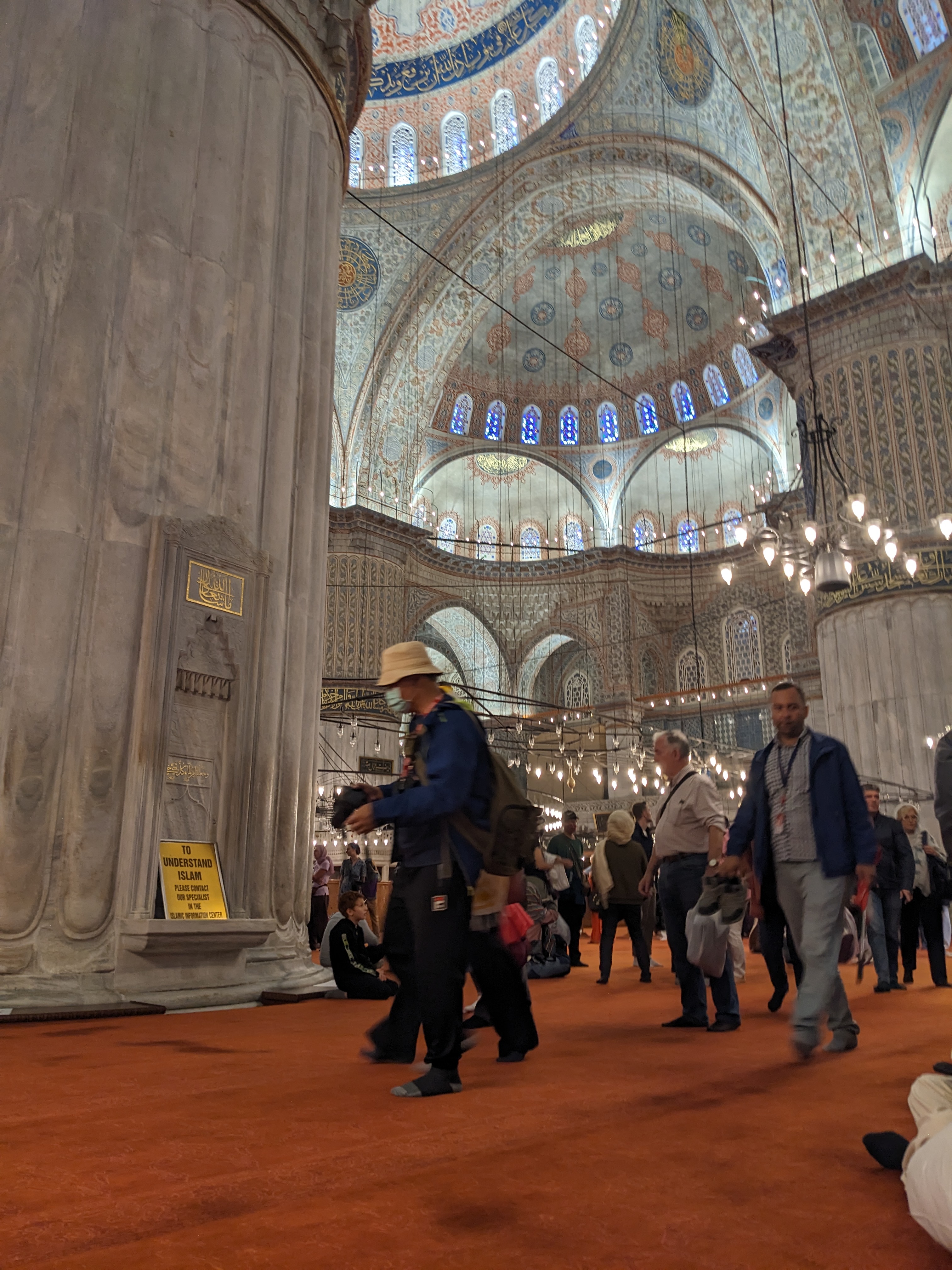 From the inside, the building becomes even more impressive. The Blue Mosque’s dome looks even more intricate from this perspective. The artwork that adorns the ceiling is original and has had been protected ever since the mosque was built. The designs come from over 21,000 tiles that were places there even though it is hard to distinguish one of the tiles from another. Still, it has created one of the most intricate pieces of art that I have ever witnessed, and much time could be spent looking at the patterns that are created above.