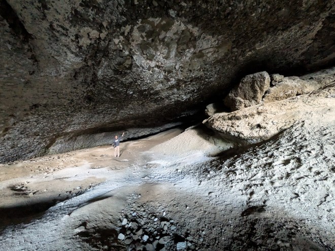 The thing to stop for is the caves. The one closest to the visitor’s center is the easiest to get to and has a paved path all of the way up there. The walkway has many signs along the way that talk about the formation of the caves, the various types of animals that used to live in the area over the centuries, and the how the first people in the area used to live. It is also the biggest of the caves, and it looks like most of the time people are allowed to walk all the way around the cave, but the back portion of the cave was closed while I was out there. It is also a very yound cave in terms of what features can be found there. There are only a few stalagtites being formed so far, but most of the ceiling and walls look as smooth as a new canvas waiting for the artist to deliver his paint.