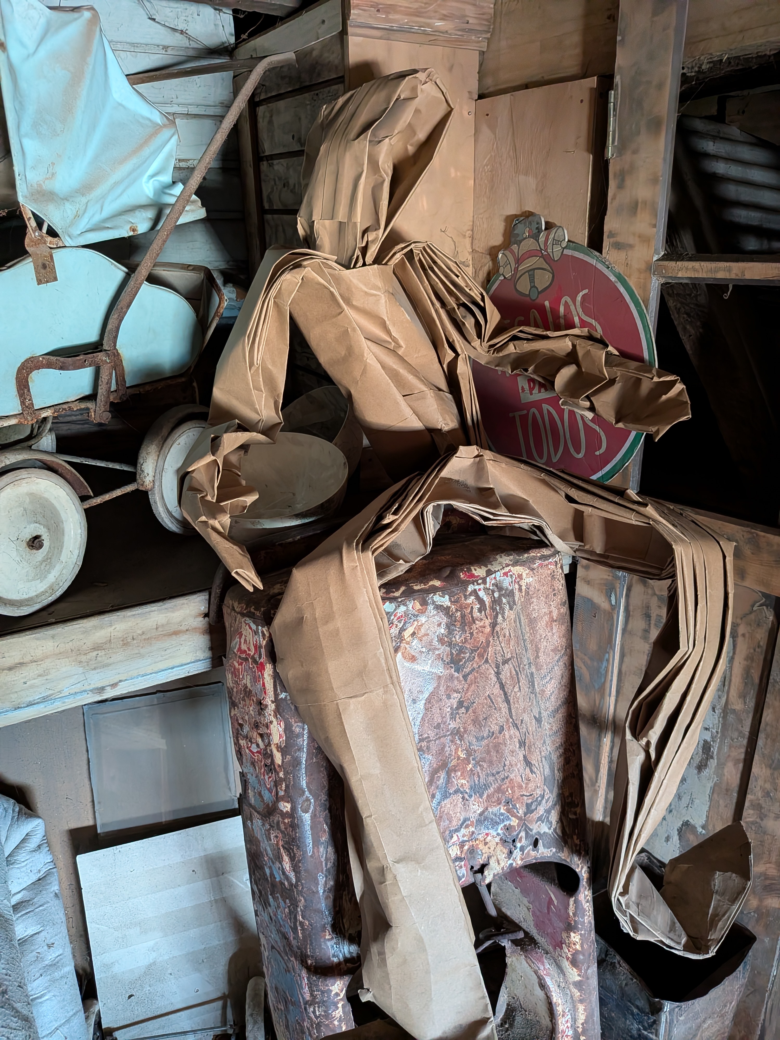 My favorites were what I called the ghosts that we hanging out in various places in the house. They were men that were put together in an origami fashion from large pieces of cardboard. They looked a little out of place, especially with the first one that I found, but in an odd way, they also looked like they belonged to this living museum.