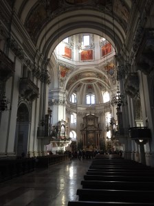 Of course, this was the place where one of the world’s most famous musicians, Mozart, got his start. Salzburg was his birthplace, and he got his start playing music in this cathedral before he went off to write his own symphonies, and operas.