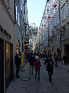 His childhood home is actually on one of Salzburg’s more famous streets, Getreidgasse. This street used to be the main economic center of Salzburg with various shops lining the street, and not much has changed over the years. People still come here to do their shopping but they now can find modern shops among the coffee shops and long established restaurants. The old signs still hang above the new ones allowing you to see what it was like back before the chains moved in.