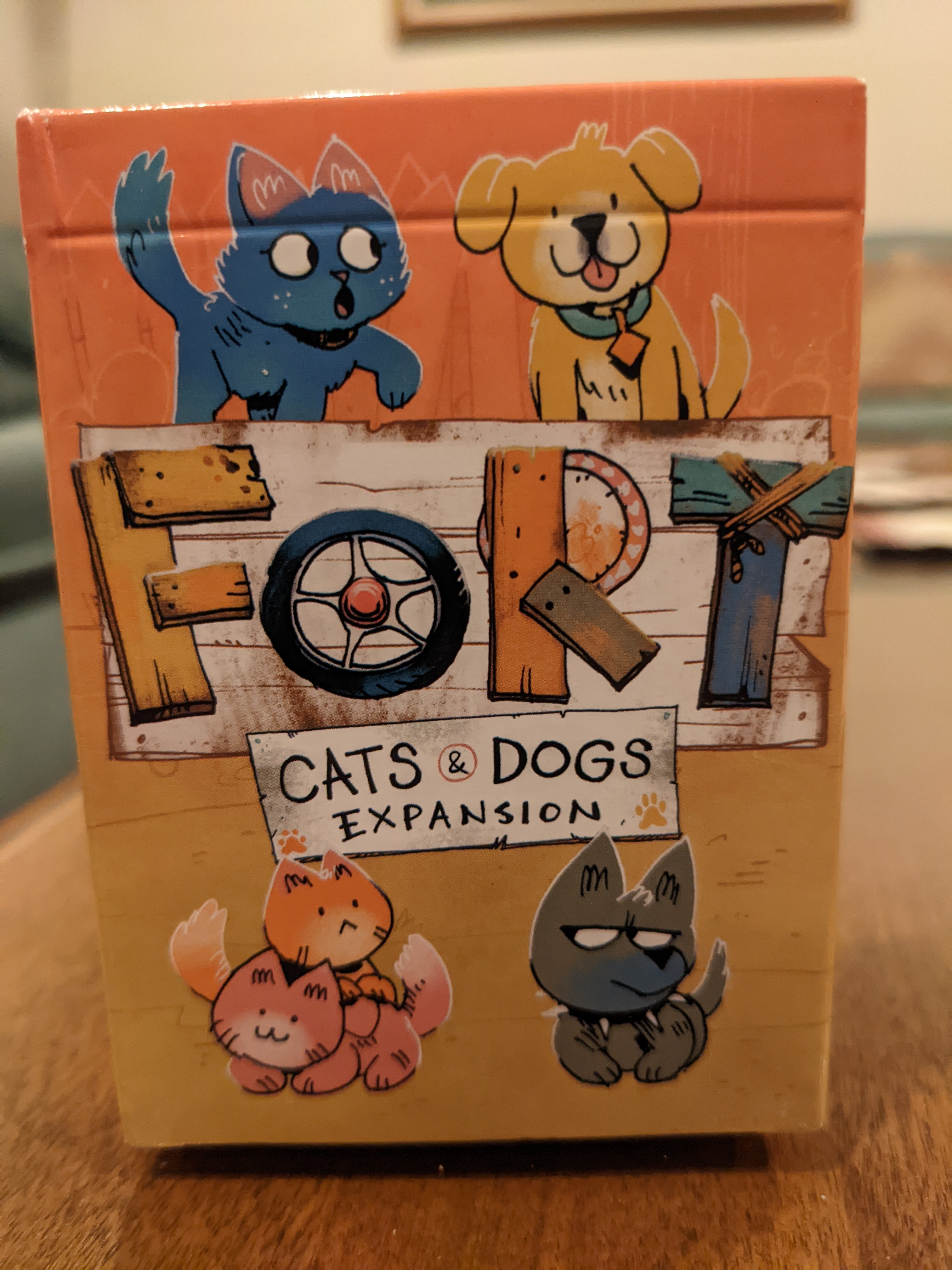Leder Games is known for their expansions to their games. They know that some games can lose their edge if you play them over and over again because it feels as if you are playing a round that you have already experienced. When they design their expansions, they do it in such a way that does not just add new cards to the game, but also adds new rule sets, so the game feels just as fresh as it did the first time that you played it. I have the feeling that Leder Games has these expansions already in mind when they release their games because the original boxes seem to have spots for these expansion already in them. The game, Fort, is no exception. They have just recently released the Cats and Dogs expansion that is packaged in a nice card box that slides in nicely next to the original deck of cards.