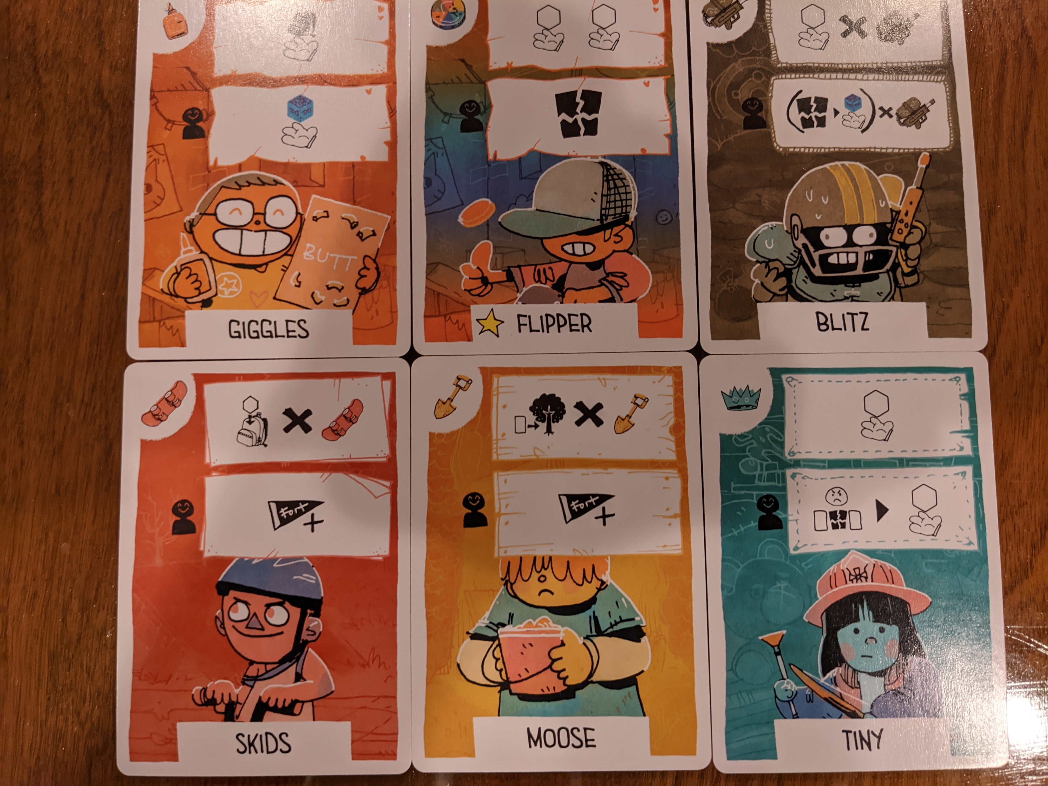 I may be a little biased, but I love Kyle Ferrin’s artwork. It is one of the things that always draws me to Leder Games. His cartoony figures add as much to the game as does the gameplay. Fort may be the game where his artwork fits in with the theme the best. Playing the game, and seeing all of these children sketched as cartoon characters, it makes me feel as if I am a part of some Saturday morning cartoon that never actually got produced. Each of the characters are completely different, and there personality seems to jump off of each card.