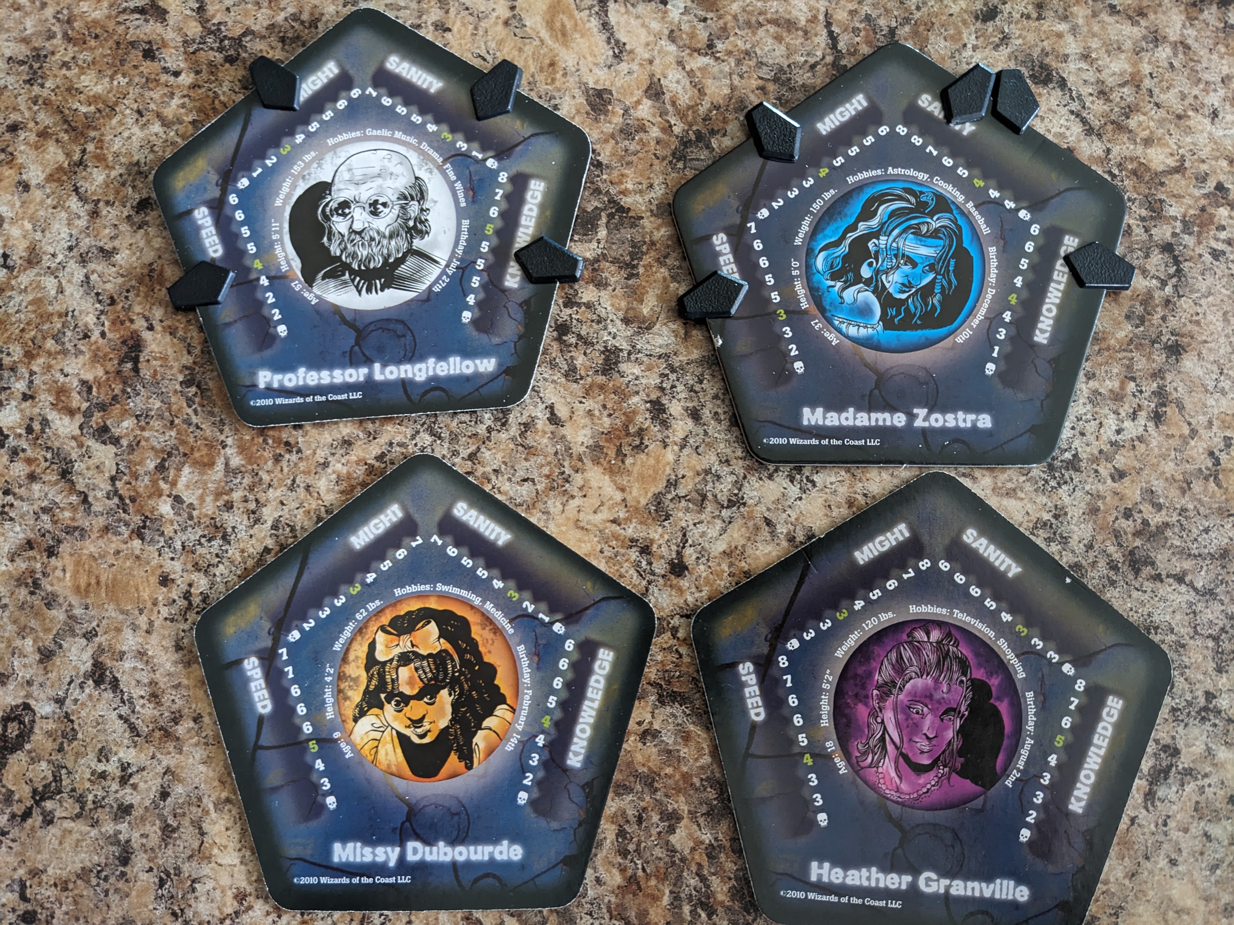 Some of the components do not work the way that they are intended. There are little tabs to keep track of the different stats of each character. They are hard to attach to the character boards, and they do not move once they are on there even though that is what they are designed to do. Considering this is an important part of the gameplay, it is annoying that they do not work well. They do sell other character cards that have dials for each of the stats that would work better, but why not put them in the game in the first place instead of supplying the game with a poor design. The game is not that expensive to begin with, and raising the price just a little bit to have better components would not take away from people buying the game.