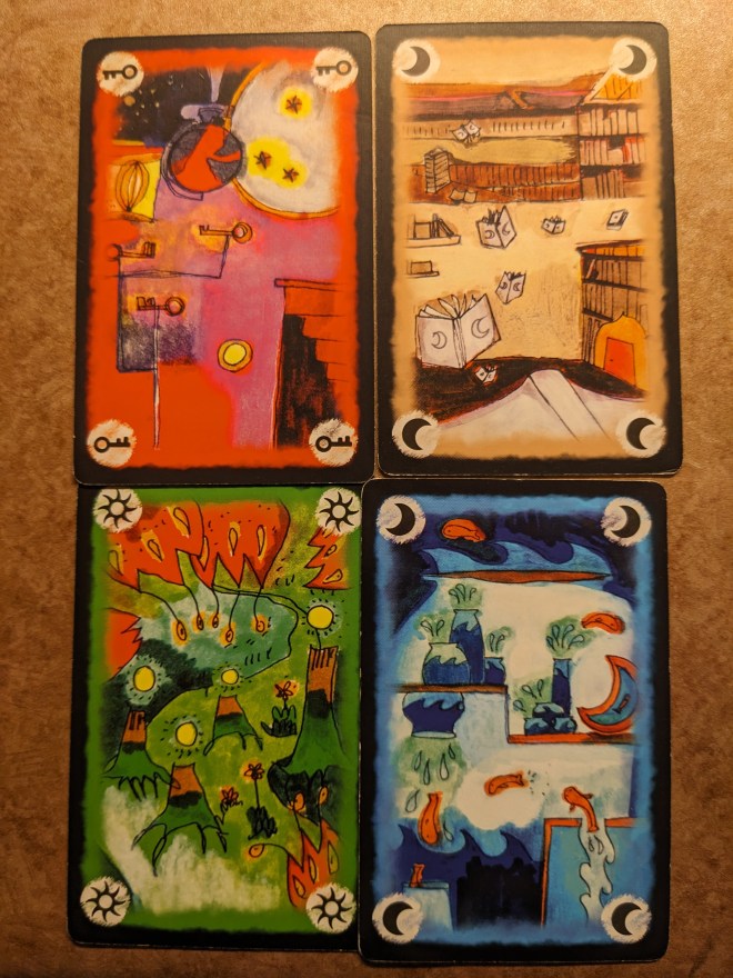 This is a story that is birthed in our greatest fears, hidden deep within our minds. We are the only ones that can find the doors to help us escape from this fear, and we have to duck and dodge the terrors that could easily find us. The theme of this game really comes to life as you sort through the cards and look for the combination that will allow you to escape from the terrors. Sometimes doors will appear when you do not have what you need in order to open that door, just like it happens in a dream. At other times, the key you have been holding for a long time will come into use to open up another door that you had been looking for a long time. Throughout all of this, there is the creature lurking in the darkness that is the greatest fear that we hold in our hearts. It will come out unexpectedly, and send us to another corner quickly just to escape the horror that it brings with it. All of these ideas present themselves brilliantly in this game, and it sometimes feels as if you are a part of that dreamscape in your waking hours.