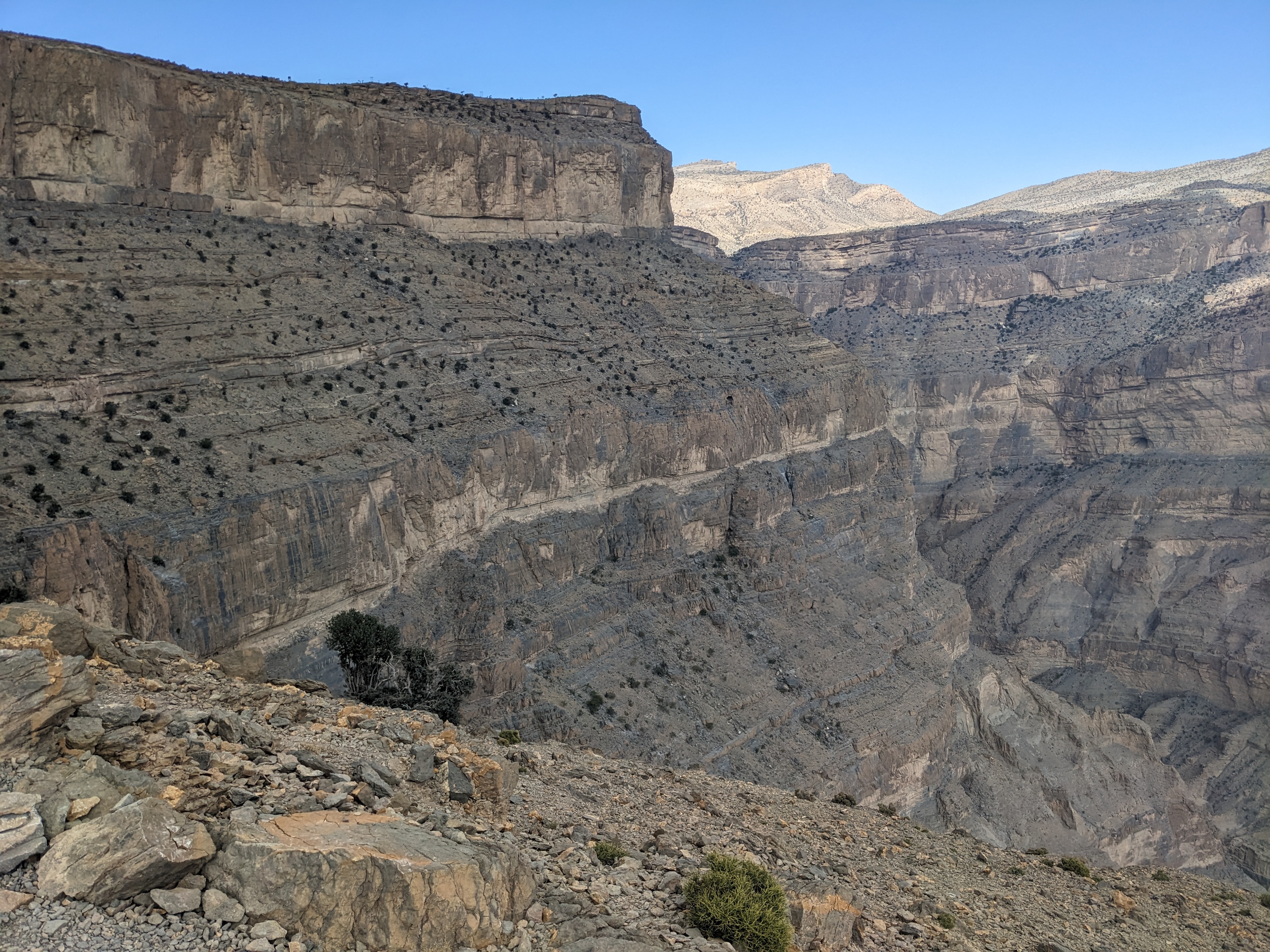 There are many wadis, or canyons, that you can hike through in Oman, but probably the most famous of them all is one that you hike along the rim of it. It is connected to Oman’s tallest peak, Jebel Shams. It is a sacred peak for many of the people in Oman because it is the first place every day to see the sunrise. It is also a great location to go to for a hike, and during the month of December, the temperatures are perfect for making the attempt.