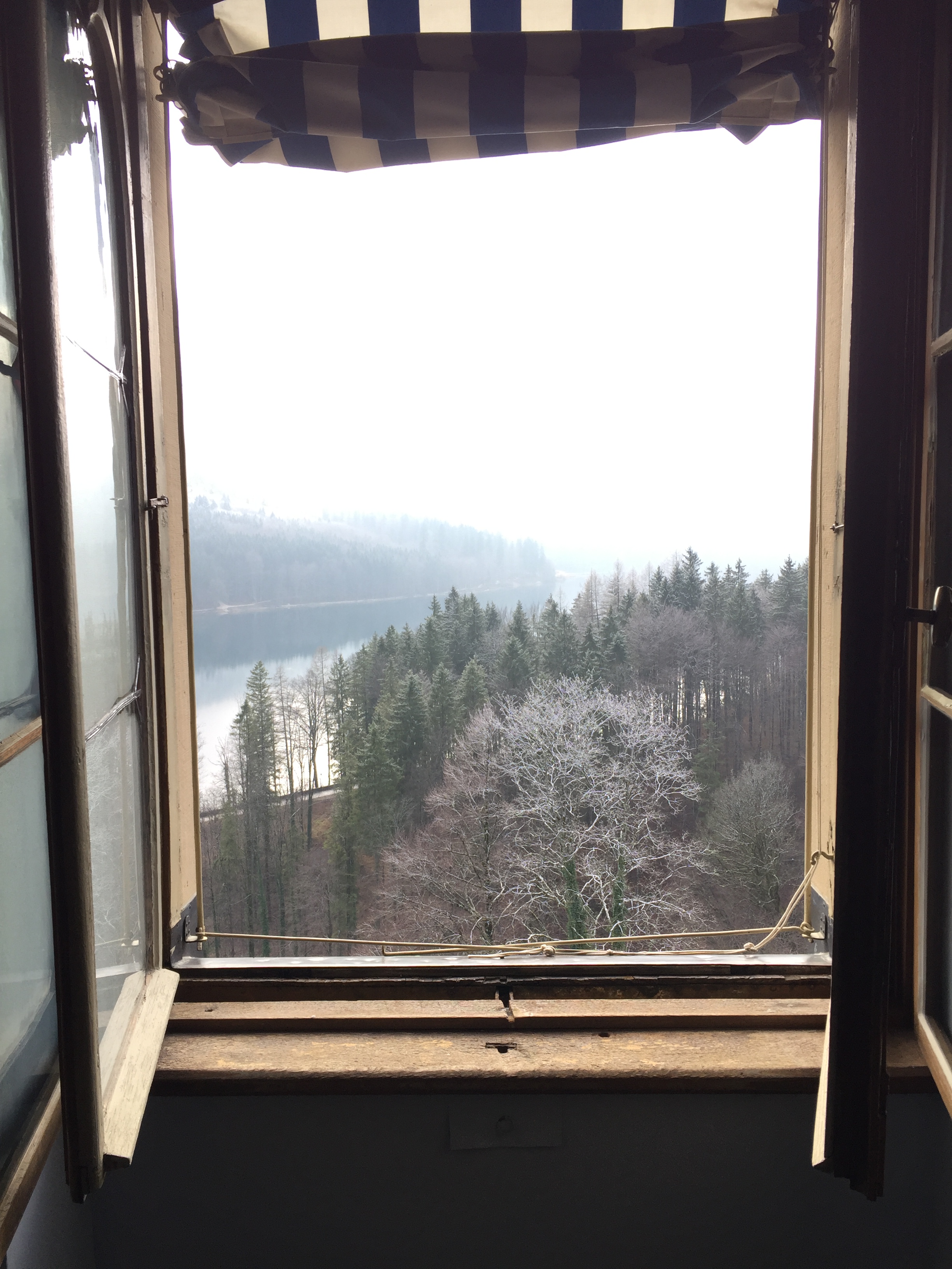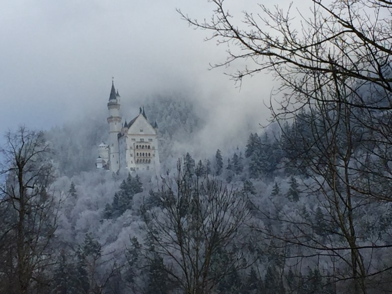 We only spent one night in this town that is most famous for the two big castles that sit on the mountains just outside of town. It was a small little hostel that was very crowded with only two bathrooms that I had to squeeze into if I wanted to use the shower. The building right across the street described the feeling of this place perfectly.