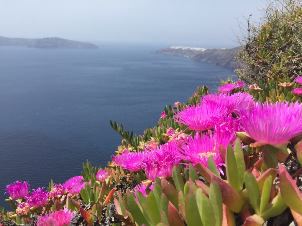 Oia is the third city and it pops in and out of view as you continue your hike. It is also a great reference point if you take this hike later in the afternoon so you can watch the sunset while making your way to that final city. The hike here gets more hilly with pushes uphill and steep downhills. Also the path turns into a path of loose volcanic rock which makes hiking go a little slower.