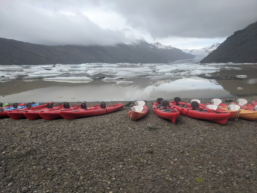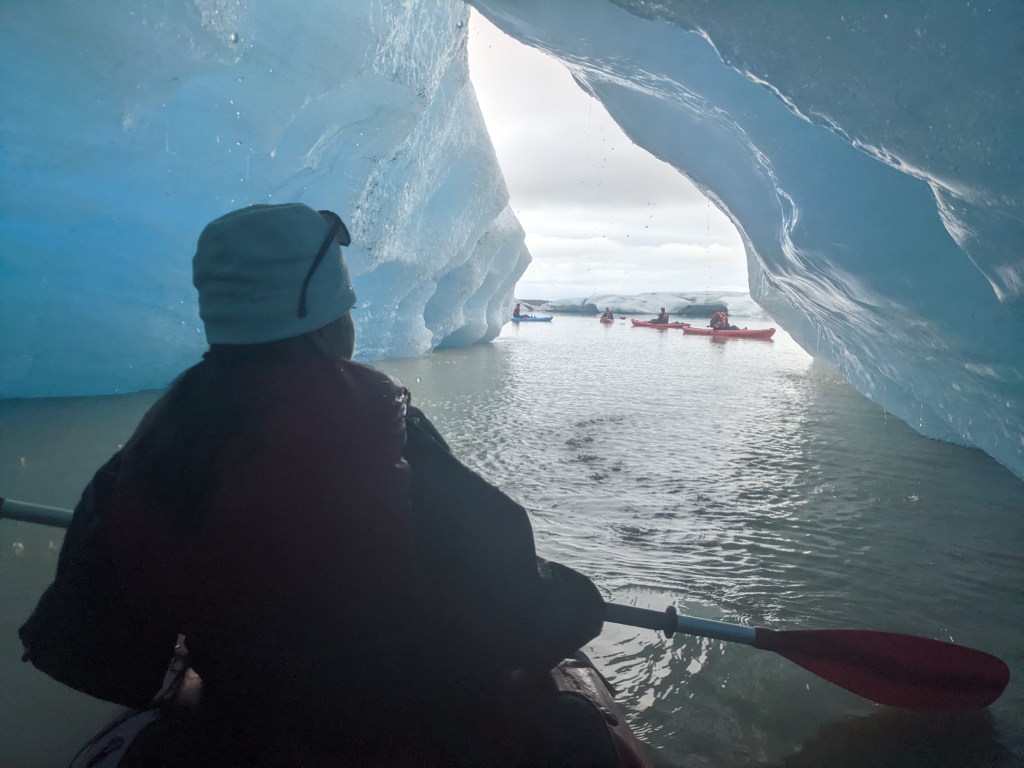 Kayaking is easily my favorite of all water sports. It does take a little technical skill, but it is easy to master, and it works on almost any body of water. I have been out on the Pacific Ocean exploring small islands out outside of Ketchakan, Alaska, the warm waters of the Adriatic Sea leaving the bay of Dubrovnik before it became King’s Landing, and a canal in Tokyo letting the gentle leaves of the cherry blossoms fall on me during the Sakura Festivals. Except for extreme whitewater, I felt I had experienced every way there is to go out on a kayak, but that was until I wound my way up to Iceland, and hooked up with the Ice Guides as they took me out on an isolated lagoon, Heinabergslon, at the base of a calving glacier.