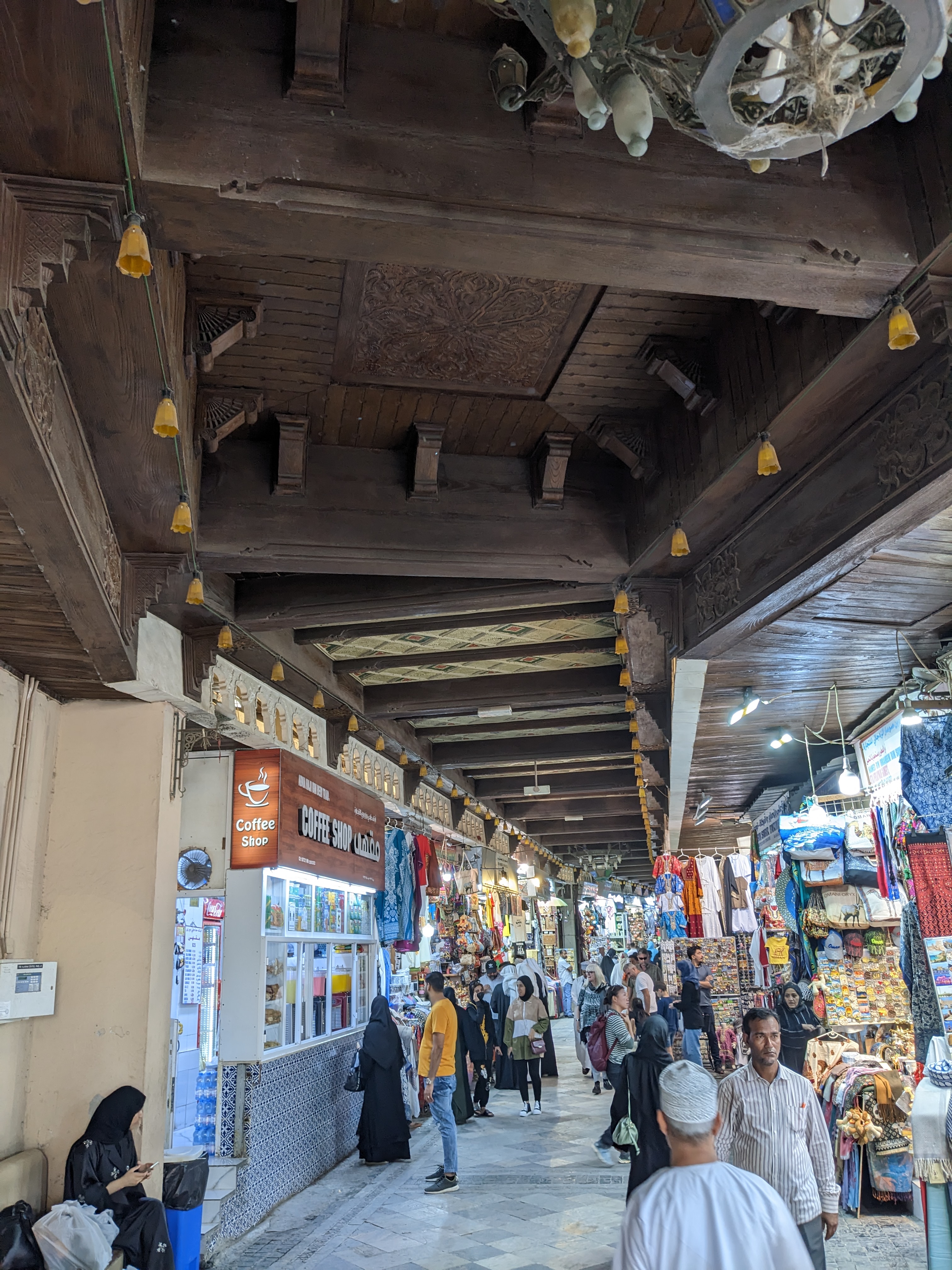 Both of the mosques in Abu Dhabi and Muscat boast of a hand woven carpet that stretches out perfectly over the main room’s floor. At first glance, it looks beautiful, but on further inspection, you will notice that there is something else going on with it. It is one piece of carpet which reaches perfectly to all of the edges, and goes around the columns nicely. To think about how this was handwoven and is just one piece that covers a vast amount of area makes you think about the care that went into creating its design. It boggles the mind to think about what was gone through to enhance the beauty of this place.