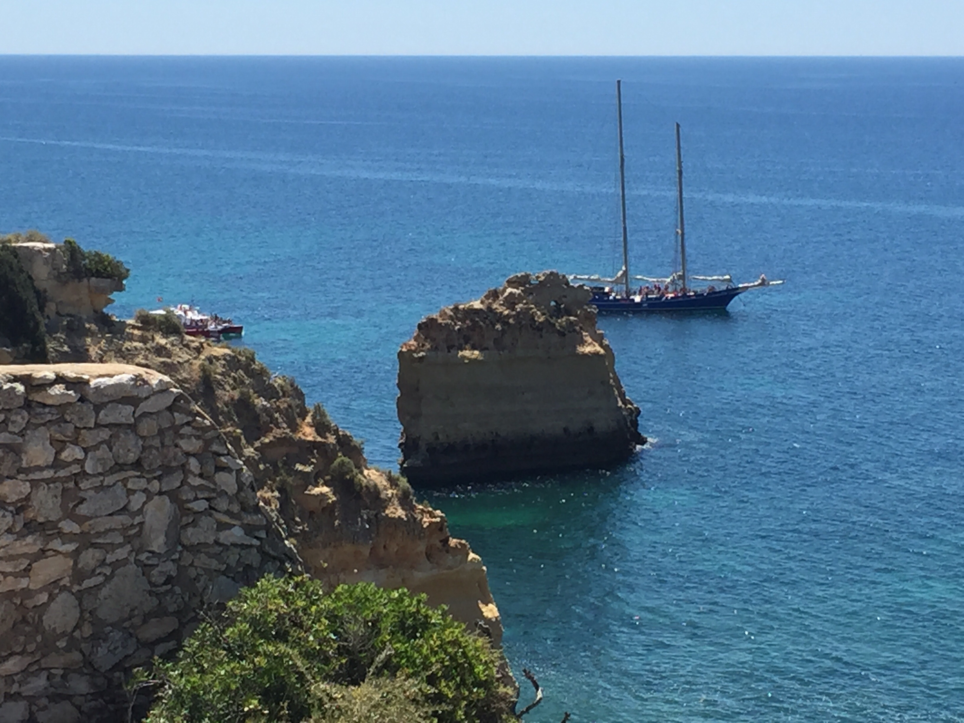 They weren’t as crowded as I thought they might be either, probably because there are enough of them out there, and everyone wants to find there own little spot on the sand, so if one beach looks too crowded, they will just move on to the next one. I only ventured past two beaches before I found the one that I liked best, Dona Ana Beach. It was the perfect beach day too. The sun was shining in the clear blue sky. The sand was not too hot because a cool breeze blew in from off the Atlantic, and if things got too warm, I could just hop into the cool water. And yes, the water was cool, but once I got my under, I was okay with it. The best part were all of the rocky structure that nature had provided to look at. It made the beach unique and even though it reminded me of beaches in Australia, they were unique enough that I knew I was some place different.