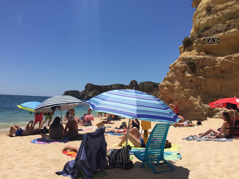 Lagos is not only known for its historic town paths, and old building; it is also known for the lush beaches that stretch on the shore of its tiny peninsula at the southern tip of Portugal. I knew about them before I can out here, but I didn’t know what type of beach to expect. I was thinking that I would have to walk over a small knoll and see it spread out before me, but the beach in Lagos are much more dramatic than that. There are a bunch of different ones dotted along the shore, and you have to hike along a cliff until you find the right one for you.
