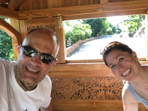 We took our masks for a second so we could get a picture on our song tol made completely of teak wood