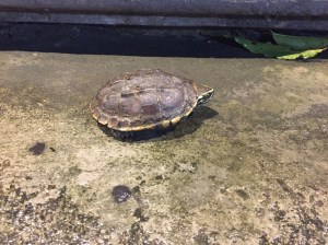 I have seen rugby ball sized turtles just strolling down the sidewalks in my neighborhood, and after any rain a cacophony of frogs sings their serenade to anybody that gets too close to them. I have seen a couple of snakes, and a few monitor lizards with the longest one being about six feet from the tip of it tail to its tooth, but they are hard to get picture of because I really do not want to get too close to them.
