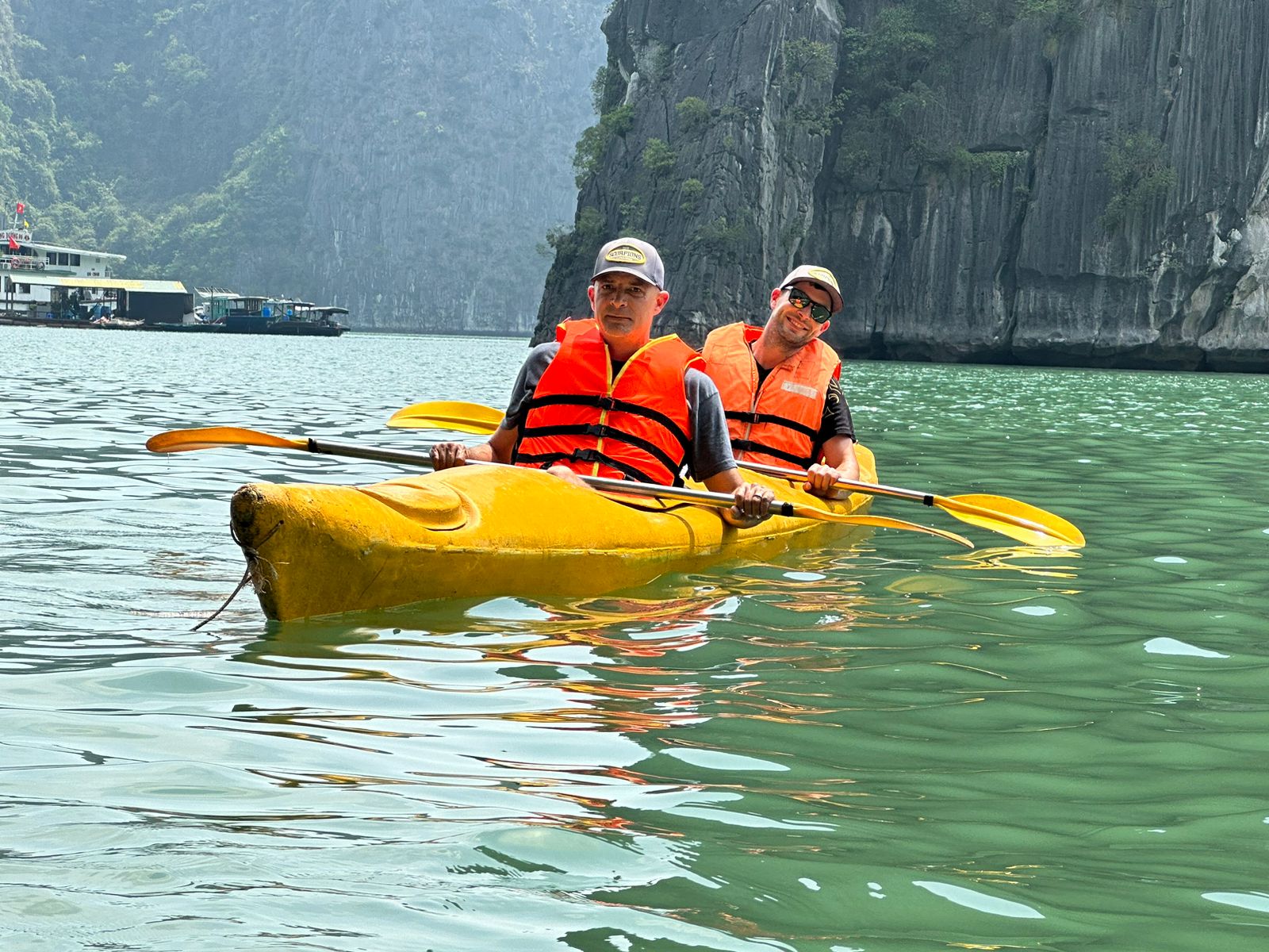 We also got to get out on kayaks for about an hour. This is a must do if you find yourself in Ha Long Bay. This is the only way to explore some of the more exciting islands. It will take you under caves, and around tight corners that the bigger boats will never be able to make it around.