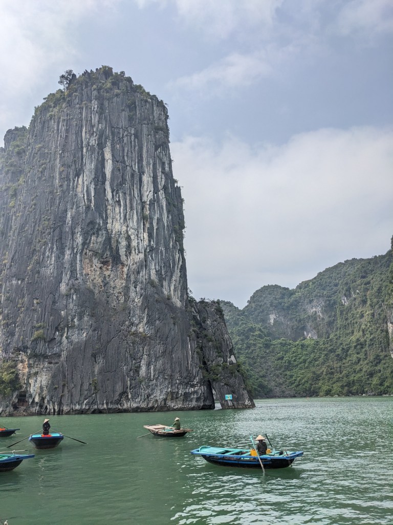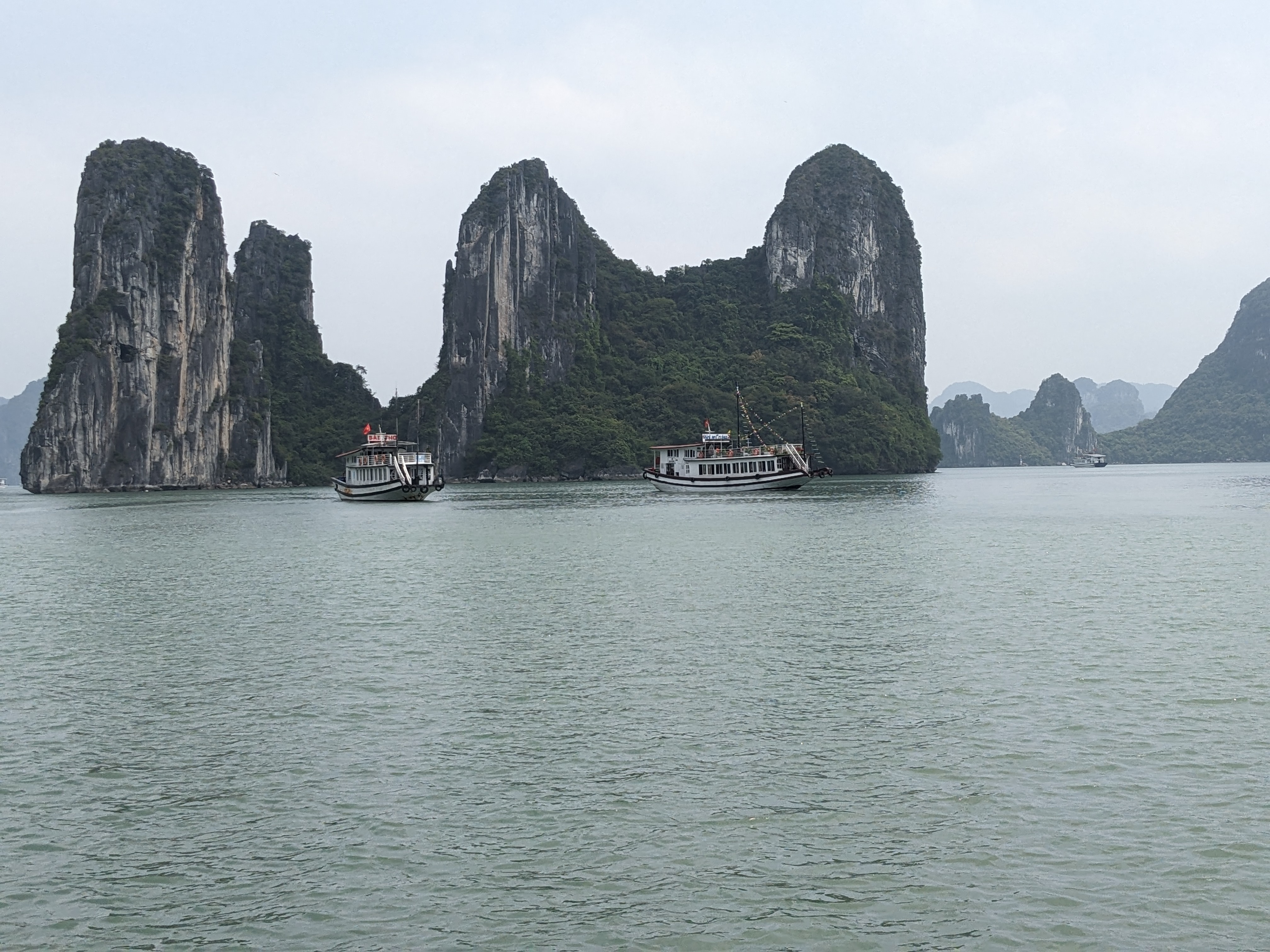 Ha Long Bay is an expanse of water coming out of northern Vietnam over 600 square miles in area. The main feature of the bay is the collection of islands. I am told that there are 1963 of these limestone giants jutting out all over the bay. Some of them are large, and hold caves that you can explore; whereas others as tiny little rocks that could hold maybe ten people if you were lucky enough to put that many folks on one of them. Each of them is a marvel to look at which makes this one of the places that many people travel to every year.
