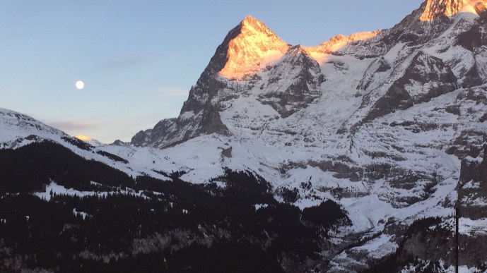 It is important to decide if you enjoy the sunrise or the sunset more. Murren gets the sunrise and it is a little after noon during the winter where the town starts to get shrouded in shadow, but if you are a morning person, the sun warms up the town quickly and it has some spectacular sunrises.