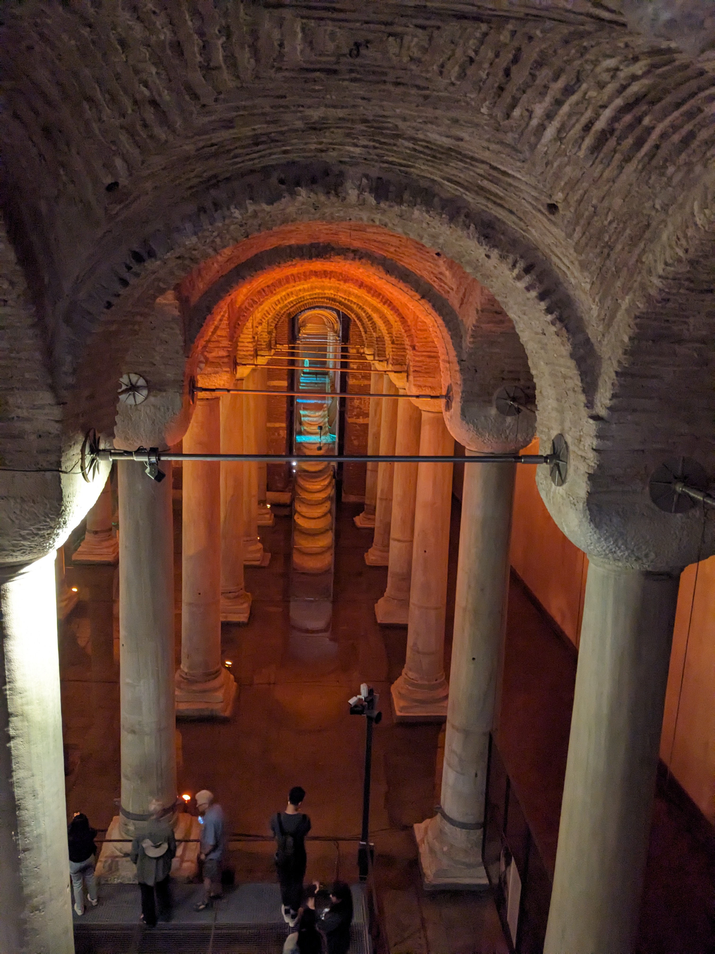 The place is massive. It covers almost 10,000 square meters, and during its heyday, it could supply enough water for 100,000 people for one day. The design has arched ceilings and a variety of columns to keep all of this water safe. The people who constructed it did not spend a lot of time making sure all of the columns matched each other. They knew that they would be covered in water and nobody would be able to see them anyways, so when they built it, they grabbed columns from old buildings and used them to build this cistern. This made it so the columns have their own charm depending on what part of the cistern you find yourself in.