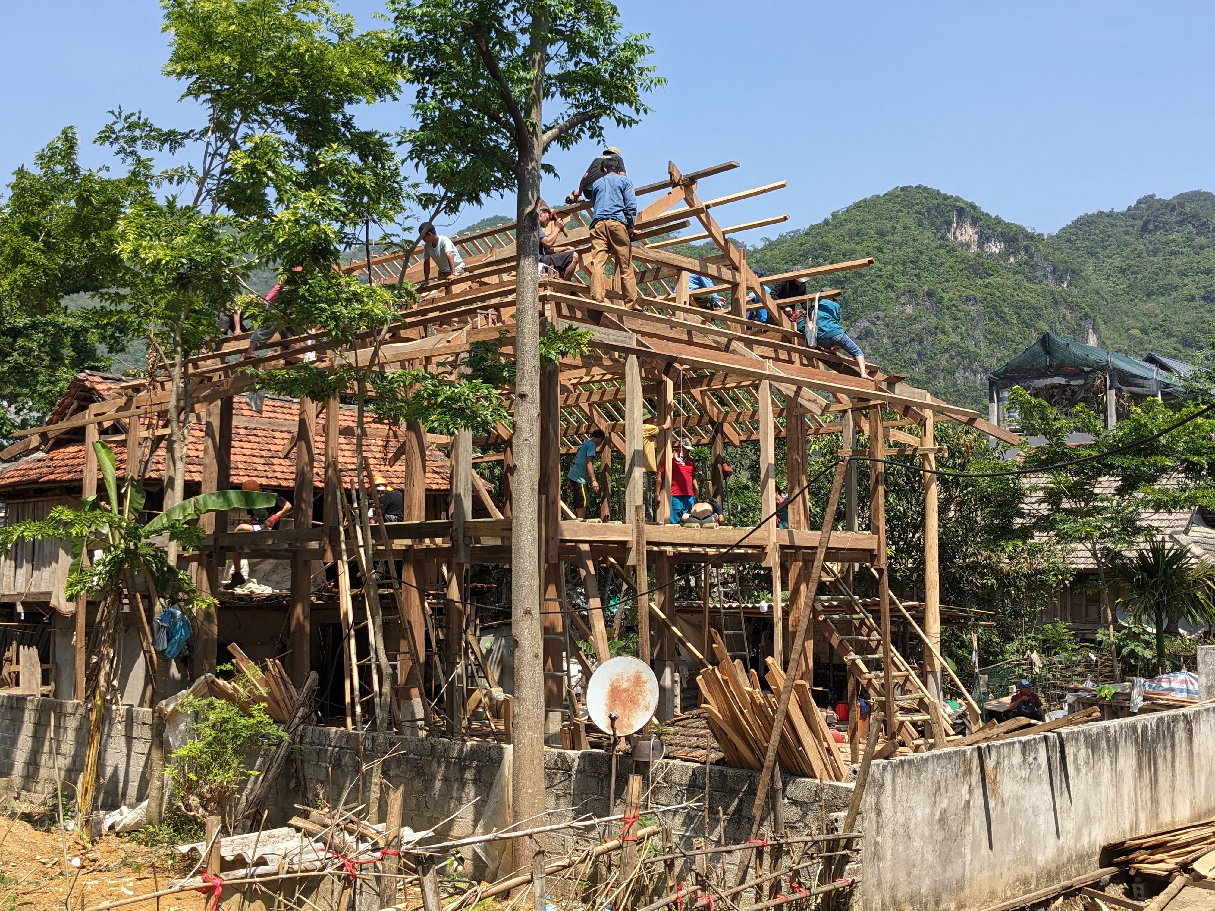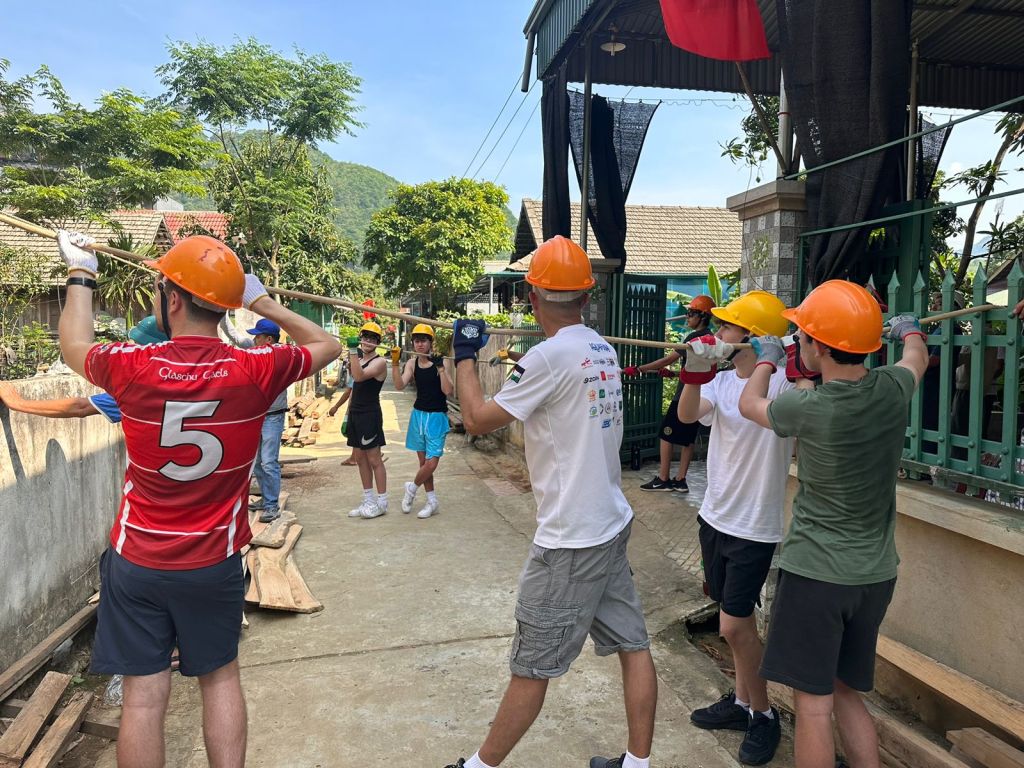 But it is not only meeting the people in the world who you are helping out, but it also taught me the hard work that goes into building a traditional house in Vietnam. Though there were a couple of power tools on the sight, we were not given access to these tools. The material also came from the hills of Mia Chau, so the family whose house we built could have fresh bamboo floors and a roof of palm leaves. I worked mainly with a rusty machete and a block of wood that became a club to unfurl bamboo to eventually turn it into a floor.